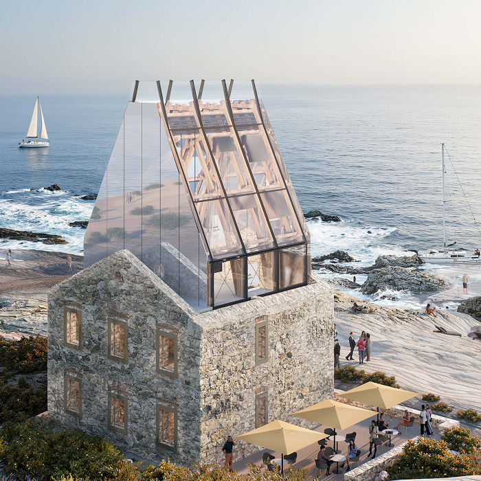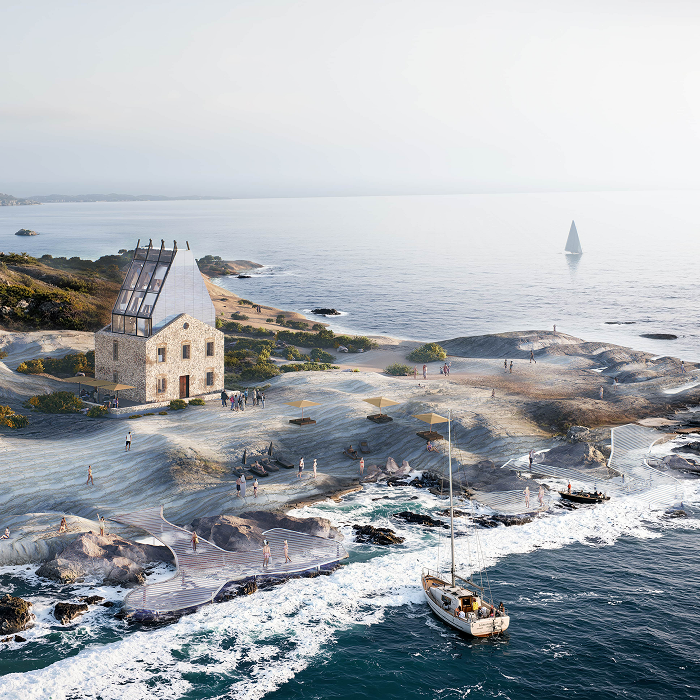 The project involves the renovation of a historic Custom House and the addition of a new pavilion. It integrates with existing hiking paths and respects sunbathing and relaxation zones along the coast. The historic structure has been given a new cultural function, serving as a center for education, exhibitions, and public engagement.